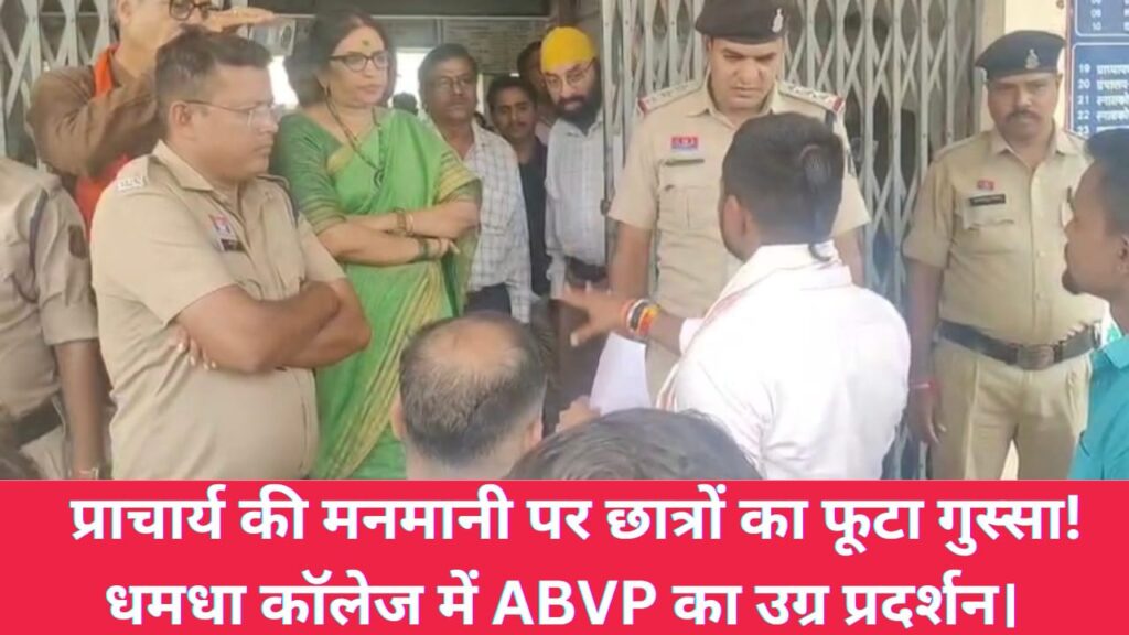 धमधा। धमधा महाविद्यालय और पेंड्रावन महाविद्यालय में व्याप्त विभिन्न समस्याओं को लेकर अखिल भारतीय विद्यार्थी परिषद (ABVP) की धमधा इकाई ने आज शासकीय महाविद्यालय धमधा में एक दिवसीय उग्र प्रदर्शन किया। प्रदर्शनकारी छात्र जनभागीदारी शुल्क में अत्यधिक बढ़ोतरी और छात्रों के साथ हो रहे दुर्व्यवहार से नाराज थे।