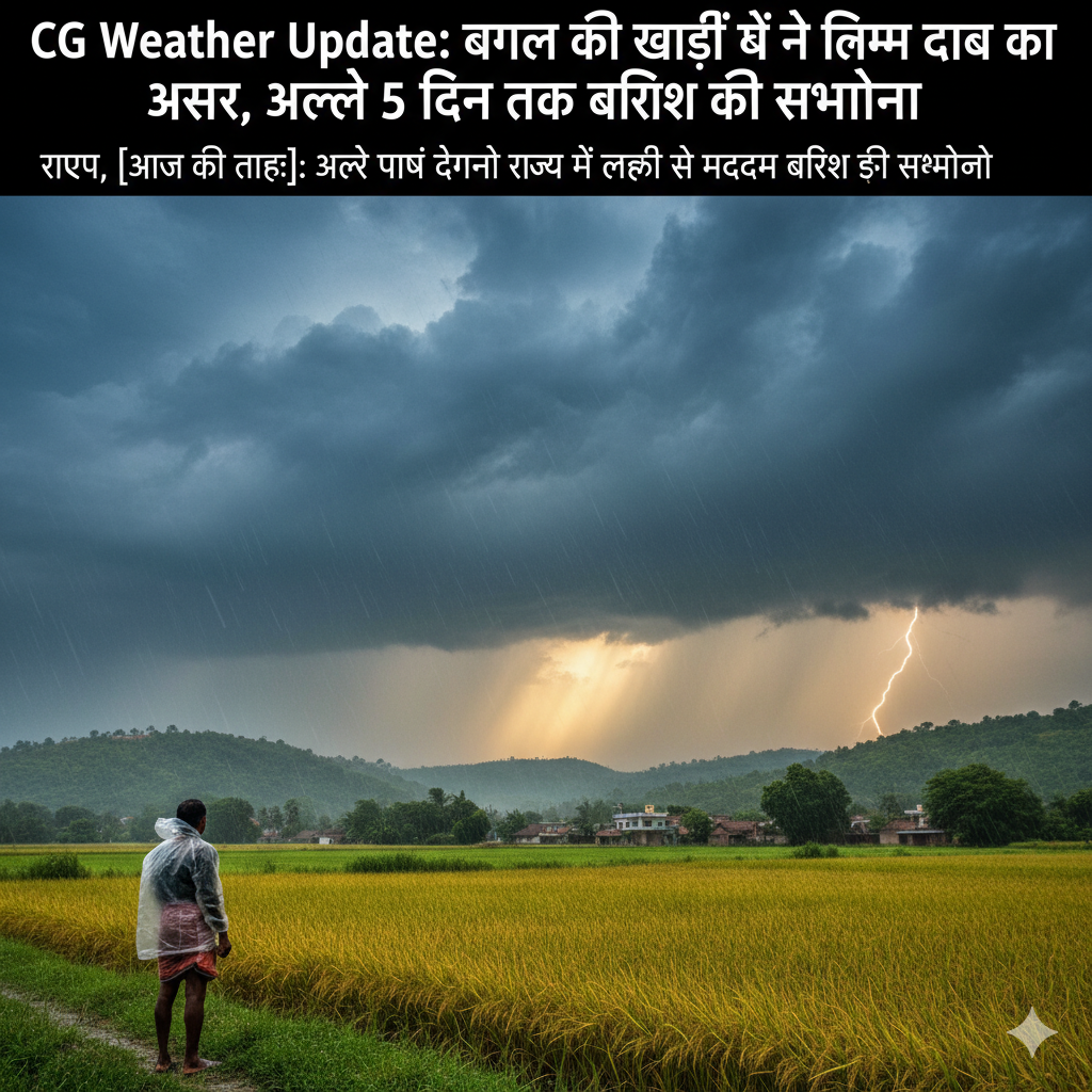 रायपुर : छत्तीसगढ़ में एक बार फिर मौसम का मिजाज बदलने वाला है। बंगाल की खाड़ी में बने निम्न दाब क्षेत्र (low-pressure area) के प्रभाव से अगले पांच दिनों तक राज्य के विभिन्न हिस्सों में हल्की से मध्यम बारिश की संभावना जताई गई है। मौसम विभाग ने इस संबंध में अलर्ट जारी करते हुए किसानों और आम नागरिकों को सचेत रहने को कहा है।