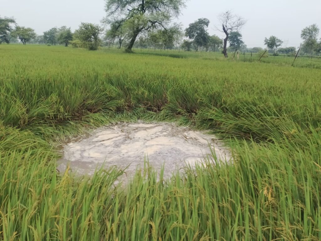 ​बेरला के कुरूद में हड़कंप: खेत में फिर हुआ प्राकृतिक भूस्खलन, लहलहाती धान की फसल के बीच 30 फीट गहरा गड्ढा