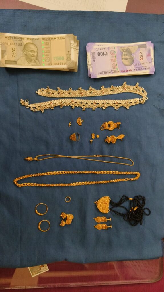कड़ाई से पूछताछ करने पर, सरस्वती साहू ने अपना जुर्म कबूल कर लिया। उसने बताया कि 29.10.2025 से 15.11.2025 की अवधि के बीच उसने 2 से 3 बार में बिना लॉक की हुई अलमारी से गहने चोरी किए थे। चोरी किए गए गहनों को उसने अपने पति सेवक राम साहू को छुपाकर रखने के लिए दिया था।पुलिस ने दोनों आरोपियों को गिरफ्तार कर लिया है और उनके पास से चोरी का पूरा माल बरामद किया है, जिसकी विस्तृत जानकारी निम्नलिखित है:सोने के जेवर: 2 सोने की चेन (लॉकेट सहित), 4 झुमके, 4 कान की बाली/टॉप्स, 1 सोने का लटकन, 1 मंगलसूत्र, 1 जेंट्स बाली।चांदी: 1 जोड़ी पायल।नकद: ₹51,600/-बरामद माल की कुल कीमत लगभग 8 लाख रुपये है। दोनों आरोपियों (सरस्वती साहू, 31 वर्ष और सेवक राम साहू, 32 वर्ष) को न्यायिक रिमांड पर भेज दिया गया है।