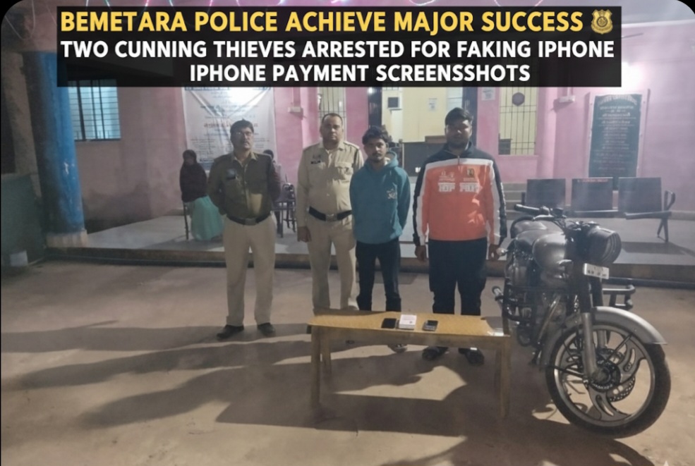 बेमेतरा पुलिस की बड़ी सफलता: आईफोन खरीदकर फर्जी पेमेंट स्क्रीनशॉट दिखाने वाले दो शातिर ठग गिरफ्तार