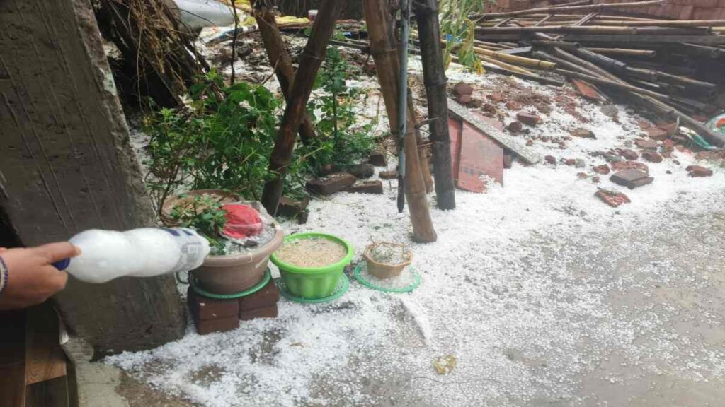 बलरामपुर जिले के वाड्रफनगर विकासखंड में सोमवार दोपहर बाद मौसम ने रौद्र रूप दिखाया। यहाँ लगभग 15 से 20 मिनट तक लगातार ओलावृष्टि हुई, जिससे सड़कों और मकानों की छतों पर बर्फ की सफेद परत जम गई।