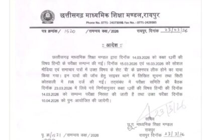 रायपुर: छत्तीसगढ़ माध्यमिक शिक्षा मण्डल (CGBSE) ने कक्षा 12वीं के छात्रों के…