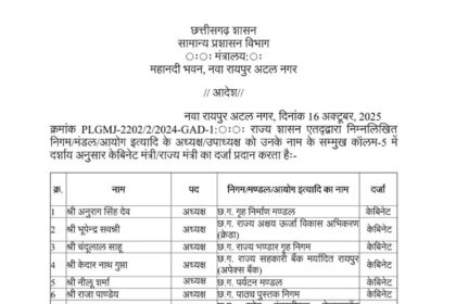 छत्तीसगढ़ सरकार का बड़ा फैसला: 35 निगम-मंडल पदाधिकारियों को मिला कैबिनेट और राज्य मंत्री का दर्जा