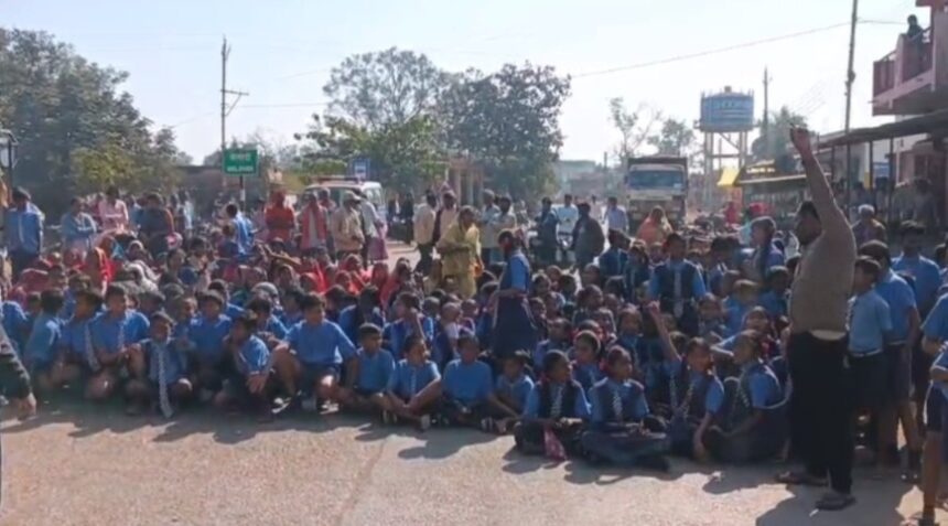दुर्ग: शिक्षकों की कमी से गुस्साए पालकों और छात्रों ने किया चक्का जाम, दुर्ग-नगपुरा रोड बाधित