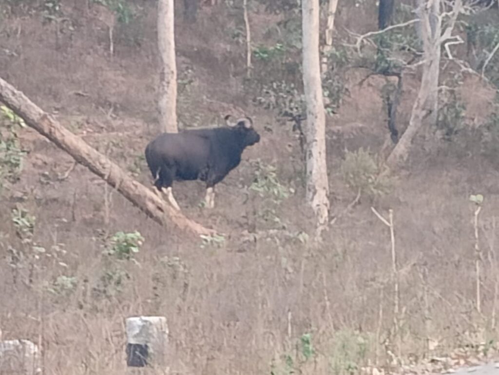 खैरागढ़ | छत्तीसगढ़ की सुरम्य बैताल रानी घाटी एक बार फिर अपनी समृद्ध जैव विविधता के कारण सुर्खियों में है। मैकाल रेंज के घने जंगलों के बीच बसे इस क्षेत्र में हाल ही में एक विशालकाय भारतीय गौर (Indian Bison) को देखा गया है। शाम के समय हुई इस दुर्लभ घटना ने न केवल राहगीरों को रोमांचित कर दिया, बल्कि पर्यावरण विशेषज्ञों के लिए भी उत्साह के द्वार खोल दिए हैं।