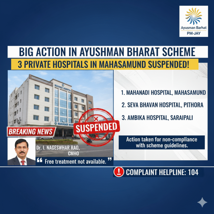 आयुष्मान भारत योजना में बड़ी कार्रवाई: महासमुंद के 3 निजी अस्पताल निलंबित!