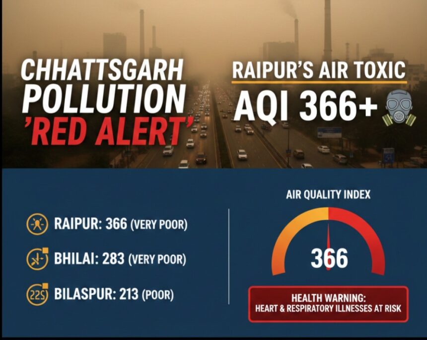 छत्तीसगढ़ में वायु प्रदूषण का ‘रेड अलर्ट’: रायपुर की हवा हुई जहरीली, AQI 366 के पार