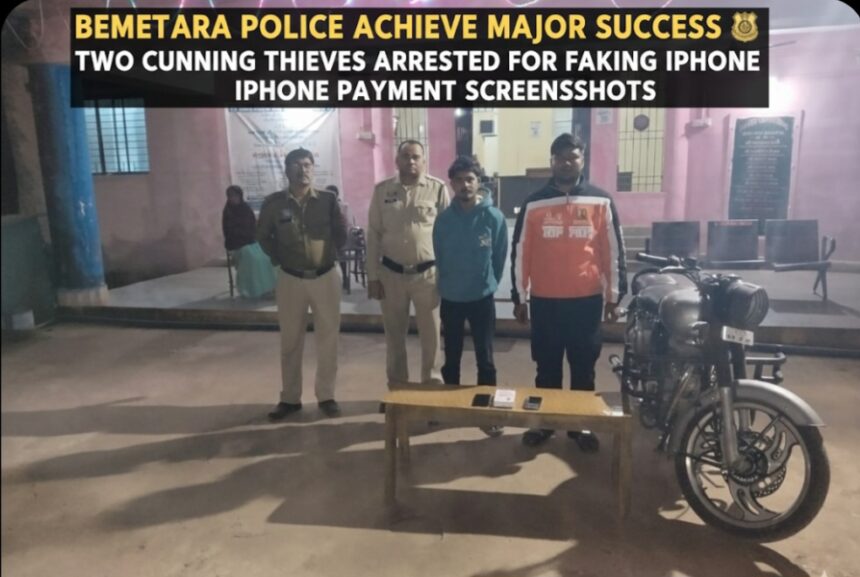 बेमेतरा पुलिस की बड़ी सफलता: आईफोन खरीदकर फर्जी पेमेंट स्क्रीनशॉट दिखाने वाले दो शातिर ठग गिरफ्तार
