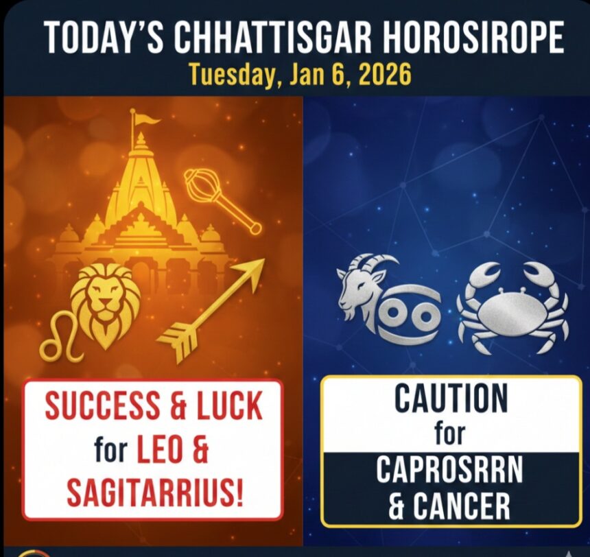 छत्तीसगढ़ के पाठकों के लिए आज मंगलवार, 6 जनवरी 2026 का विशेष राशिफल। आज पौष मास के कृष्ण पक्ष की द्वितीया तिथि है। आज का दिन मंगल ग्रह के प्रभाव…