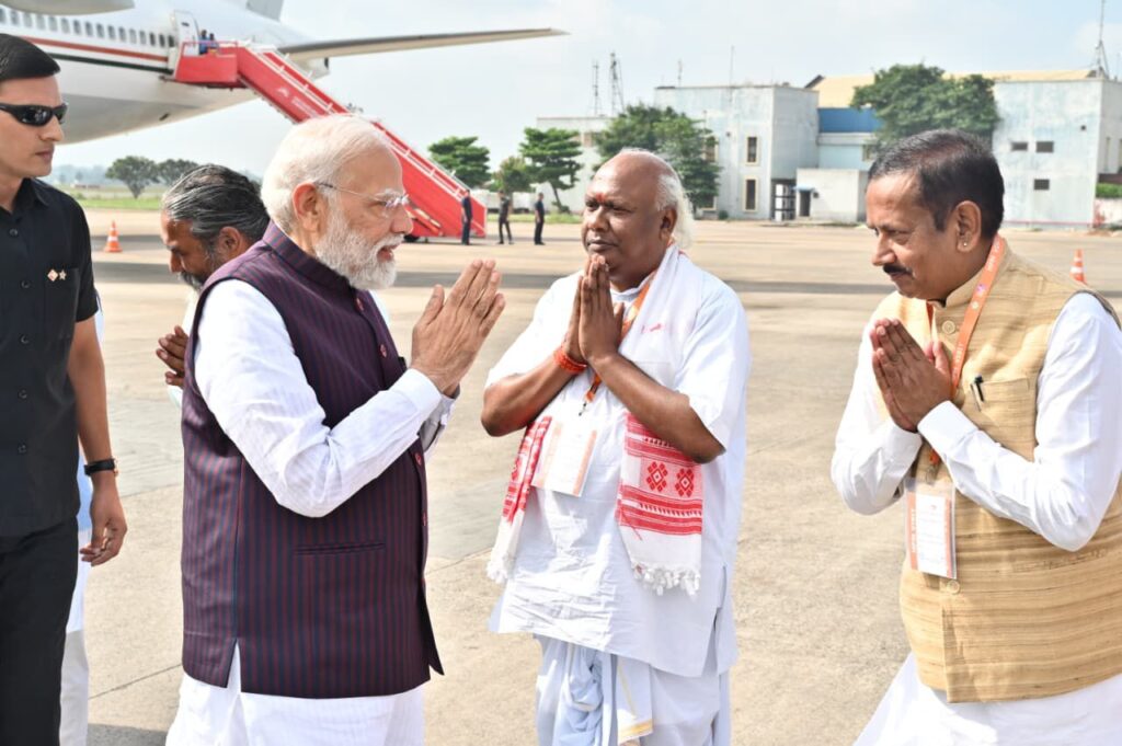 एयरपोर्ट पर प्रधानमंत्री मोदी का भव्य और आत्मीय स्वागत किया गया। स्वागत करने वाले प्रमुख नेताओं में: