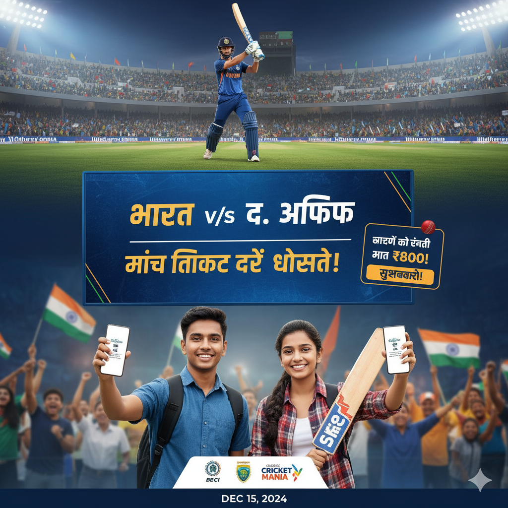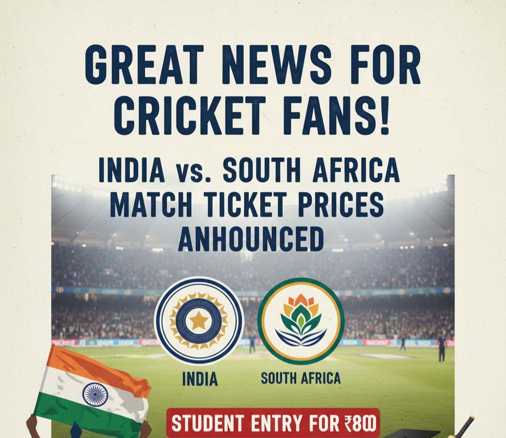 रायपुर क्रिकेट फैंस के लिए खुशखबरी! भारत-द. अफ्रीका मैच की टिकट दरें घोषित, छात्रों को ₹800 में मिलेगी एंट्री